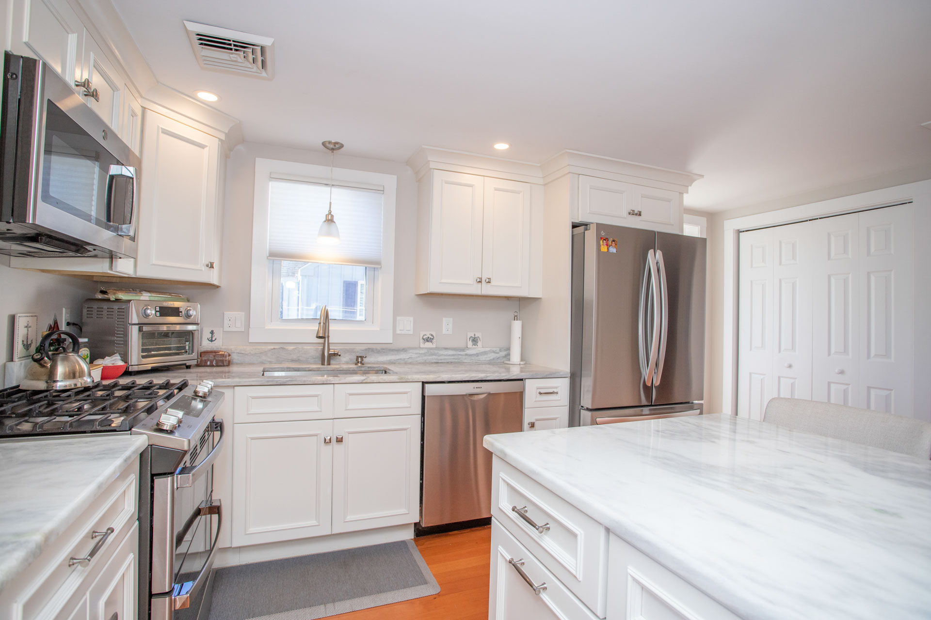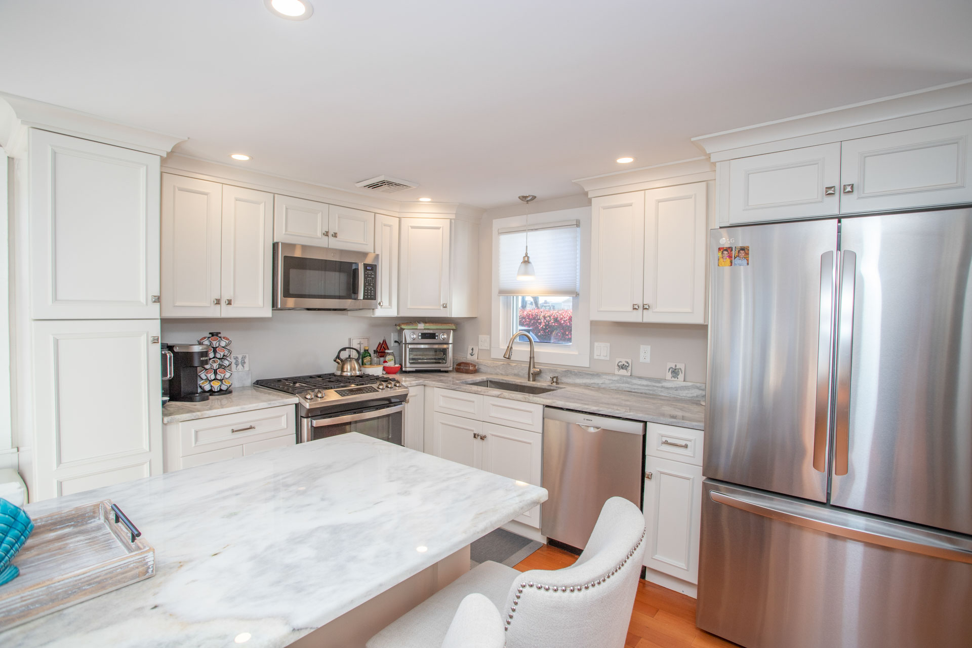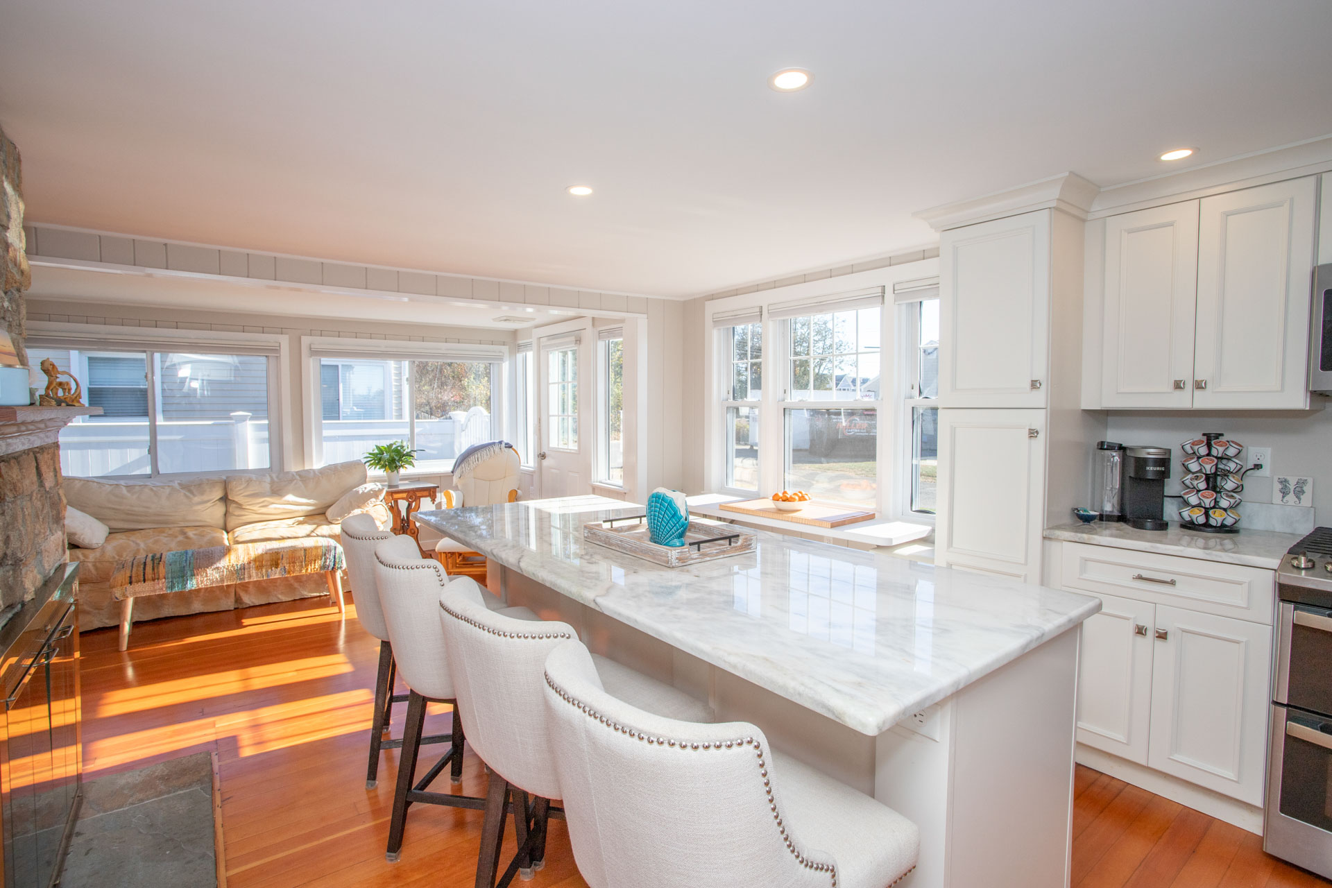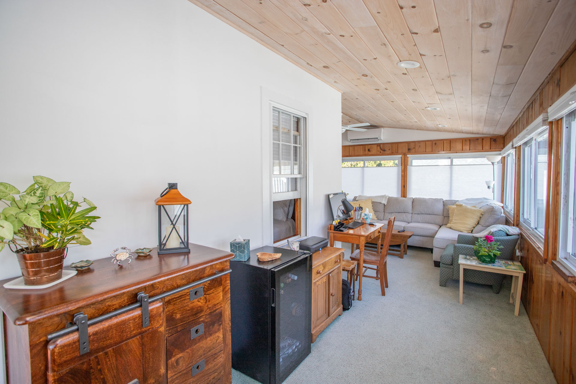 Waterviews on a quiet street! This quaint 2 bedroom and 1 bathroom home has been remodeled and updated to include many modern amenities. Brand new white cabinet and solid surface kitchen renovation in 2023 that includes a remodeled bathroom / laundry room and an outdoor front deck with table, chairs and umbrella to enjoy the water views. A short walk down a private road to West Beach, nice size backyard with outdoor shower and grilling area. Both bedrooms equiped with queen beds, 2 week minimum bookings only. |