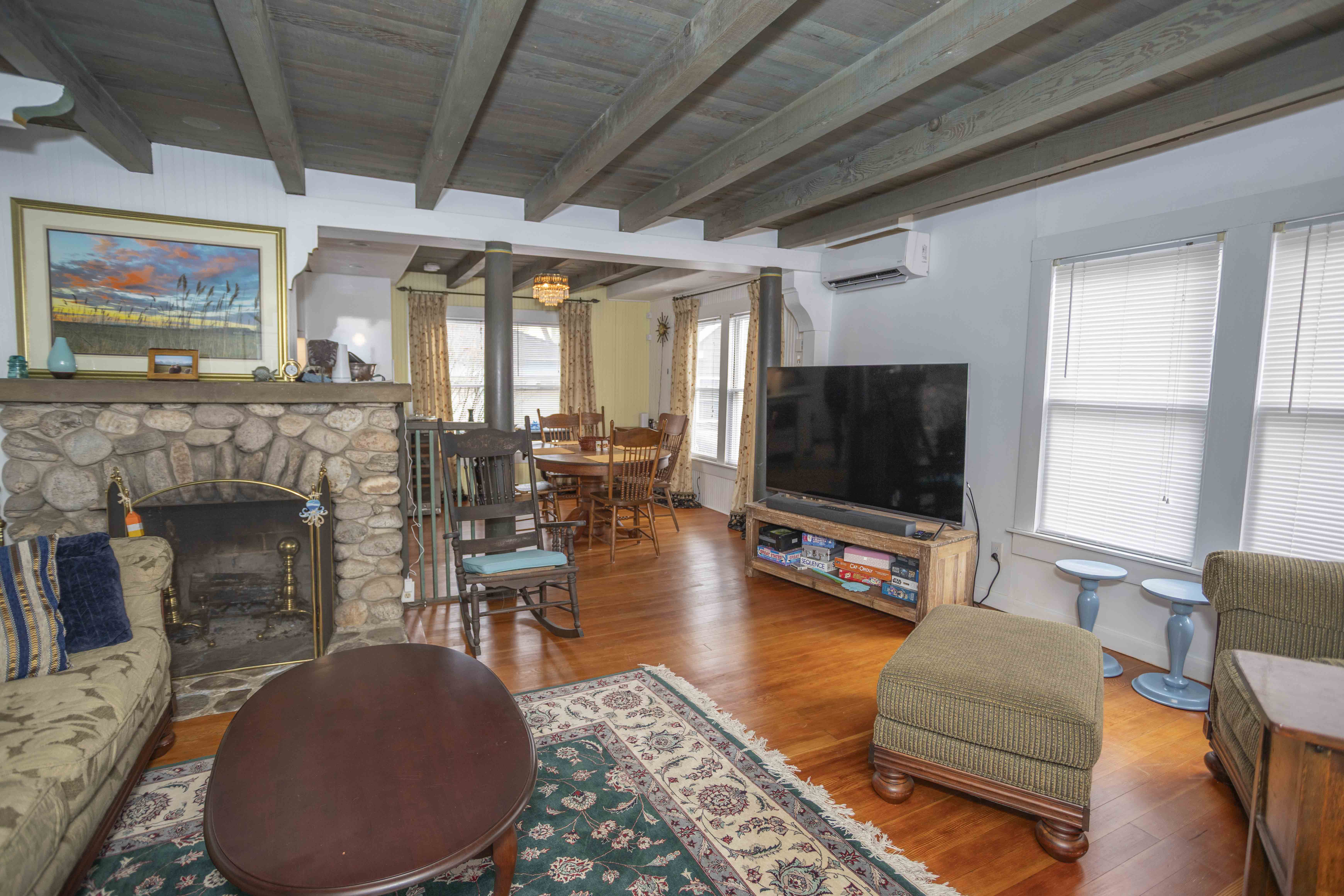 | Welcome to this classic Cornfield Beach cottage for your next summer getaway. This home has been carefully remodeled in keeping with the classic features such as the beach stone fireplace (sorry, just for looks only!), original hardwood floors, and exposed ceiling joists that will give you the look and feel of a cottage. Inside, the main level offers plenty of seating and space to spread out either in the living room, dining room, or large sun porch with the kitchen located towards the back of the home for preparing meals. |