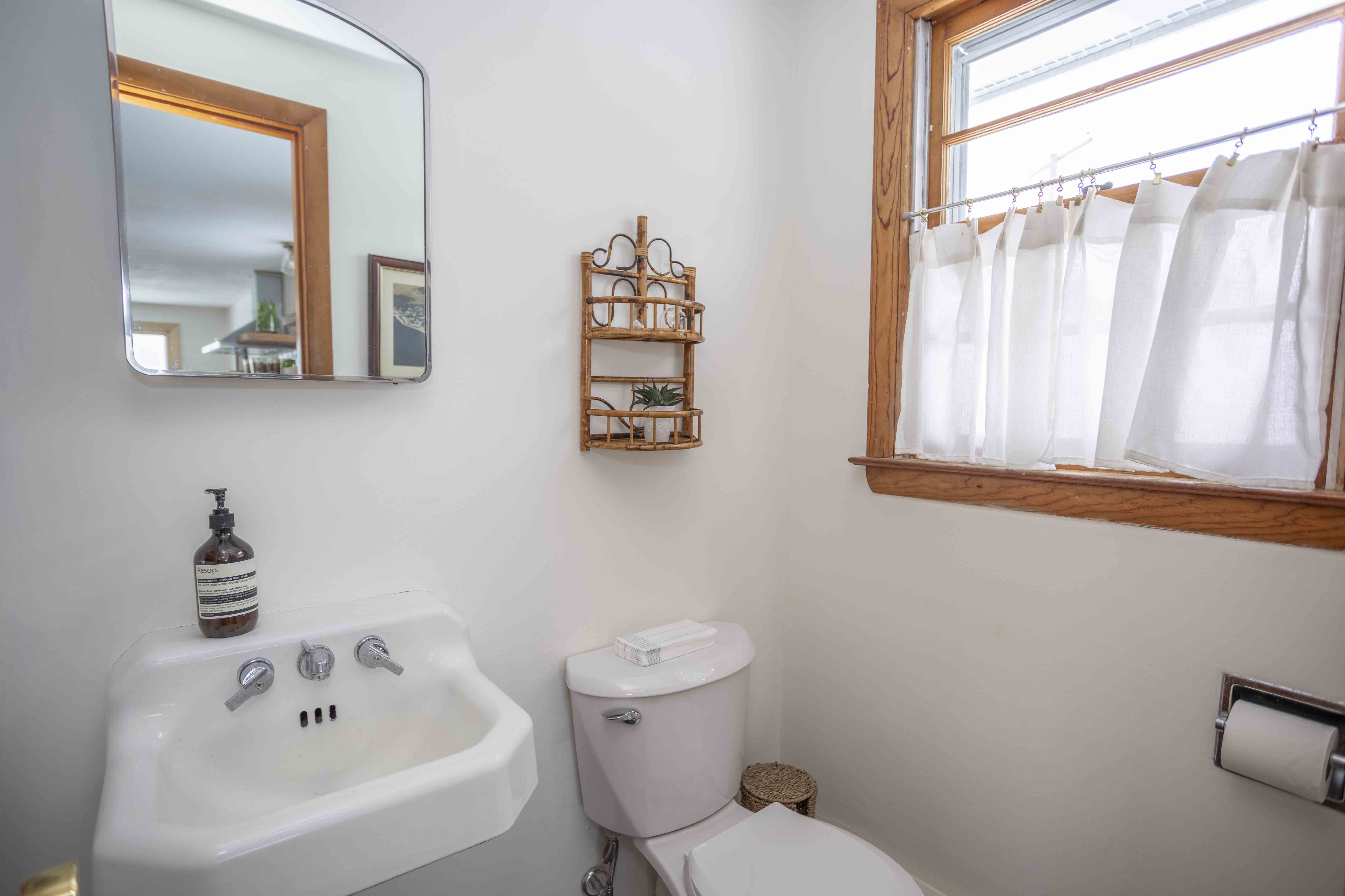 1 full bathroom in bedroom hallway ; 1/2 bath off of kitchen |